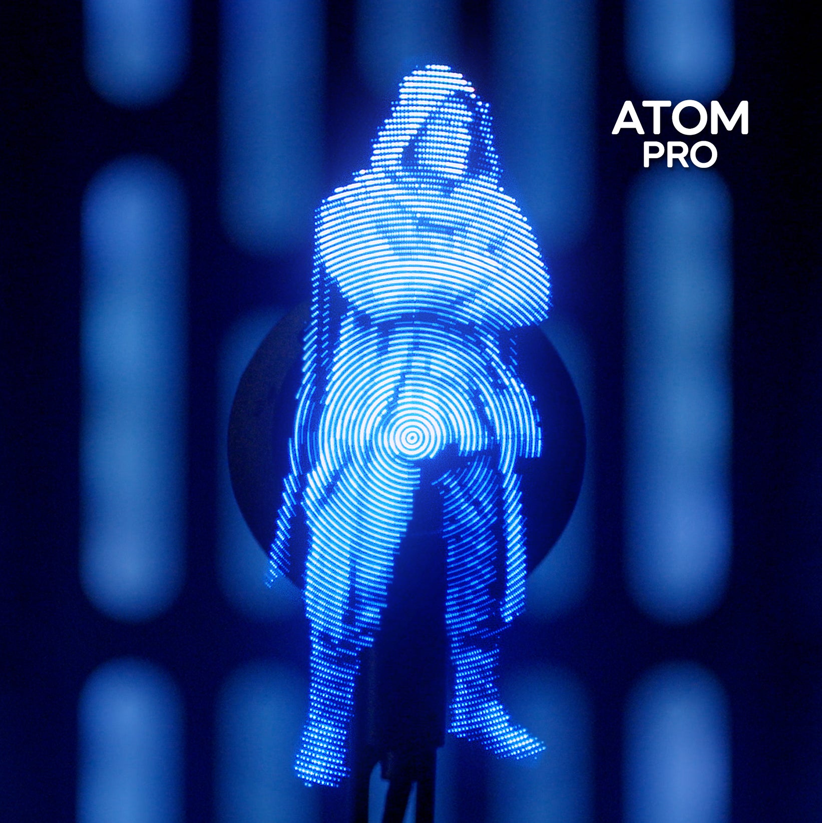 Our Pixel Arc Atom features a single high-speed spinning blade with RGB LED lights that rapidly change colors. Bright areas in your video appear solid, while dark areas become transparent.